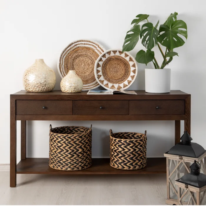 Meşe, doğal ve dayanıklı bir malzemedir. Yüzeyi, doğal ahşap hissini korumasına yardımcı olan koruyucu bir cila ile daha dayanıklı hale getirilmiştir.