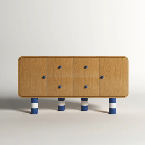Malzeme: Mdf üzeri doğal meşe kaplama, parlak lake ayaklar ve kulplar
