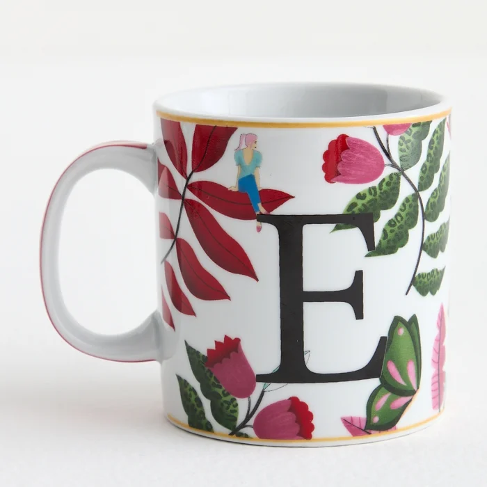 Imagine E Forest desenli ve harf baskılı porselen kupa