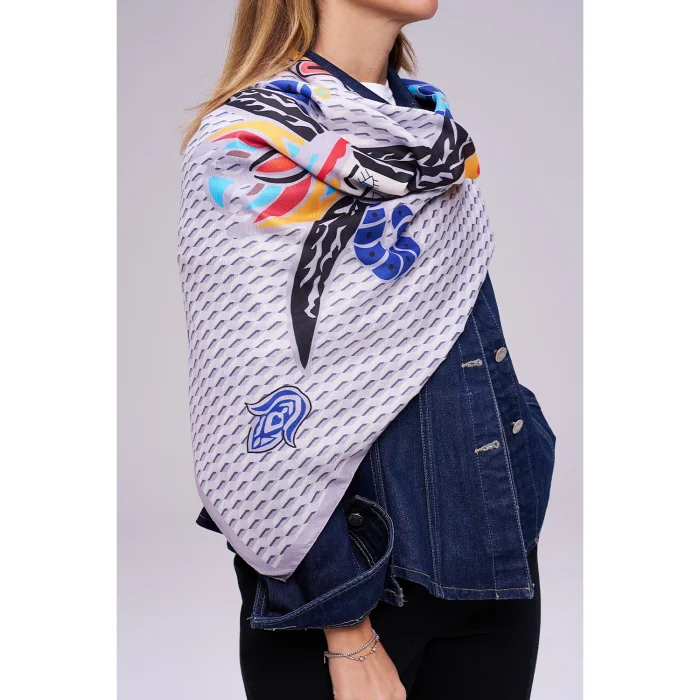Canlı renkleri, detaylı işlenmiş Şahmeran figürü ve güçlü sembolik dokunuşlarıyla hem şık bir aksesuar hem de kültürel bir ifade aracı olarak öne çıkar. 110x110 cm ölçüsü sayesinde farklı bağlama stillerine uyum sağlar; ister boyunda ister çantada, ister saç aksesuarı olarak kullanıldığında tarzınıza sofistike bir dokunuş ekler.