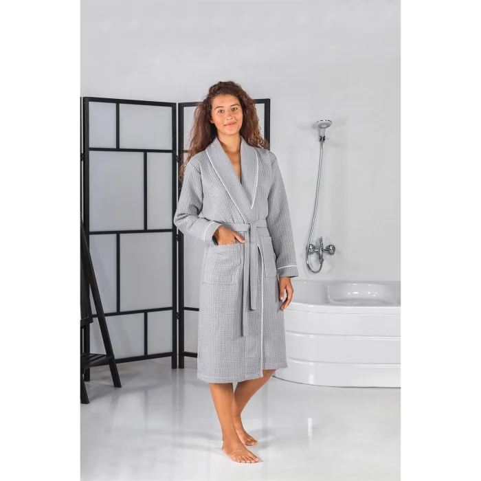 Gri Pike Bornoz + Gri Havlu Seti Gri pike bornoz birinci kalite pamuk ipliği ile üretilmiştir. Kaliteli dokusu ile ve tasarımı ile evde, banyoda, havuzda, spada ve plajda zevkle kullanabilirsiniz. Nem emiciliği çok yüksek olup kumaş dokusu yumuşacıktır.Pike gri bornoz unisex modeldir. Bornozla aynı kumaştan üretilmiş 50x100 ebatlarında havlu ile set olarak gönderilmektedir. Paket İçeriği: 1 Adet Soho Gri Bornoz + 1 Adet Gri Havlu Havlu Ebat: 50x100 cm Kumaş: %65 Pamuk %35 Polyester Ürünümüz OEKO-TEX sertifikalıdır. Neden Oeko-Tex Sertifkalı Ürün Almalıyım ? - Oeko-Tex sertifikalı ürünler uluslararası standartlara göre tüm testlerden başarıyla geçmiş ve onaylanmış ürünlerdir. - Kanserojen ve alerjen materyaller içermez. Cildi tahriş etmez ve insan sağlığına zarar vermez.