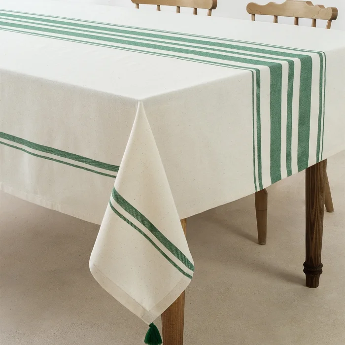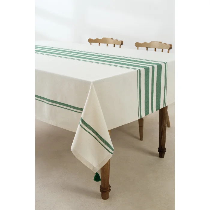 Püskül Detaylı Yeşil Masa Örtüsü Çizgili deseniyle hem modern hemde retro bir görünüm elde edebileceğiniz yeşil masa örtüsü modelimiz ile masalarınızda şık bir hava yakalayacaksınız. Kaliteli ve kullanışlı bir yapıya sahip olan yeşil masa örtüsü modelimiz uzun süreli kullanıma elverişlidir.; Dört kenarı düz dikişlidir.; Köşelerinde ponpon detay bulunmaktadır; Kumaş İçeriği: % 65 pamuk %35 polyester; Masa ÖrtüsüÖlçüsü : 160x220 cm; Paket İçeriği: 1 Adet Yeşil Masa Örtüsü; Ürünümüz OEKO-TEXsertifikalıdır. ; Neden Oeko-Tex Sertifkalı Ürün Almalıyım ?; Oeko-Tex sertifikalı ürünler uluslararası standartlara göre tüm testlerden başarıyla geçmiş ve onaylanmış ürünlerdir. ; Kanserojen ve alerjen materyaller içermez. Cildi tahriş etmez ve insan sağlığına zarar vermez. ;