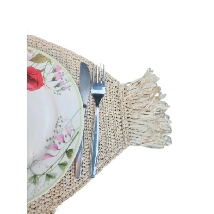 Bu el örgüsü rafya balık şeklindeki supla, sahil evi atmosferini sofralarınıza taşıyor. Farklı ve şık tasarımıyla, deniz temalı sofralar için mükemmel bir seçim. Bej tonlarındaki doğal rafya ipliğiyle işlenmiş olan bu supla, sade ama zarif bir dokunuş ekler. Yat veya tekne masalarına, sahil evlerine, veya deniz temalı mekanlara uyum sağlayacak şekilde tasarlandı. Hem estetik hem de fonksiyonel olan bu supla, masanıza doğal bir hava katarak, her öğününüze özgünlük ve şıklık sunar. Doğal malzemelerin zarif birleşimiyle, modern deniz stilini sofralarınıza yansıtan bu parça, her sofrada dikkat çekici bir detay olacak.