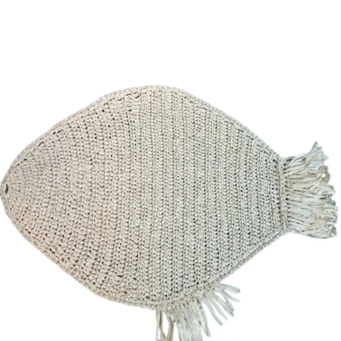 El Örgü Rafya Balık Şeklinde Supla - Sahil Evi Masa Dekoru - Yat Tekne Masa Supla - Şık ve Farklı Bej Renk