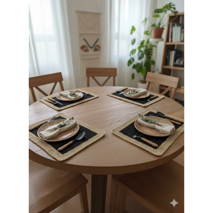 Ürün: El Yapımı 2 Adet Raffia Amerikan Servisi - Doğal Örgü Boho Masa Dekoru