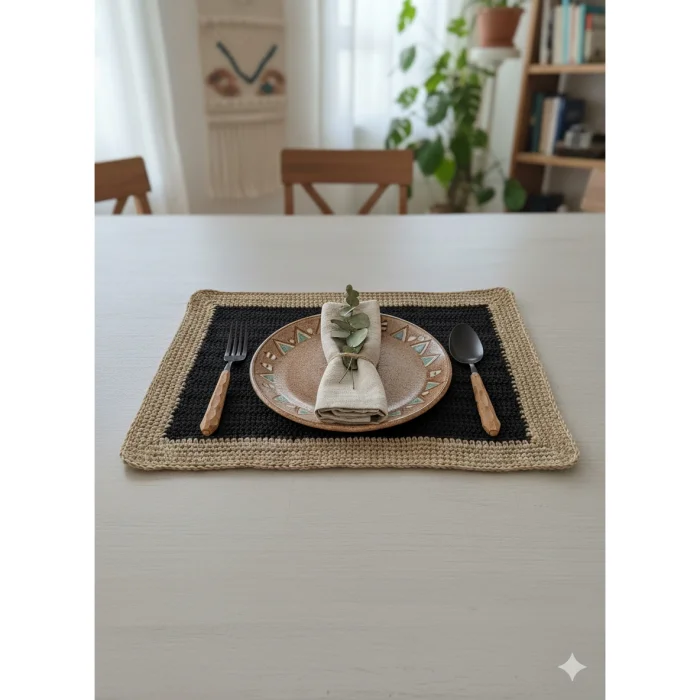 Çevre Dostu ve Dayanıklı: %100 sürdürülebilir raffia kullanılarak üretilmiştir. Hafif, dayanıklı ve temizlemesi kolay olması sayesinde günlük kullanım için uygundur. El örgüsü tasarımı, her parçanın benzersiz ve el yapımı olmasını sağlar, masa dekorunuza kişisel bir dokunuş katar.