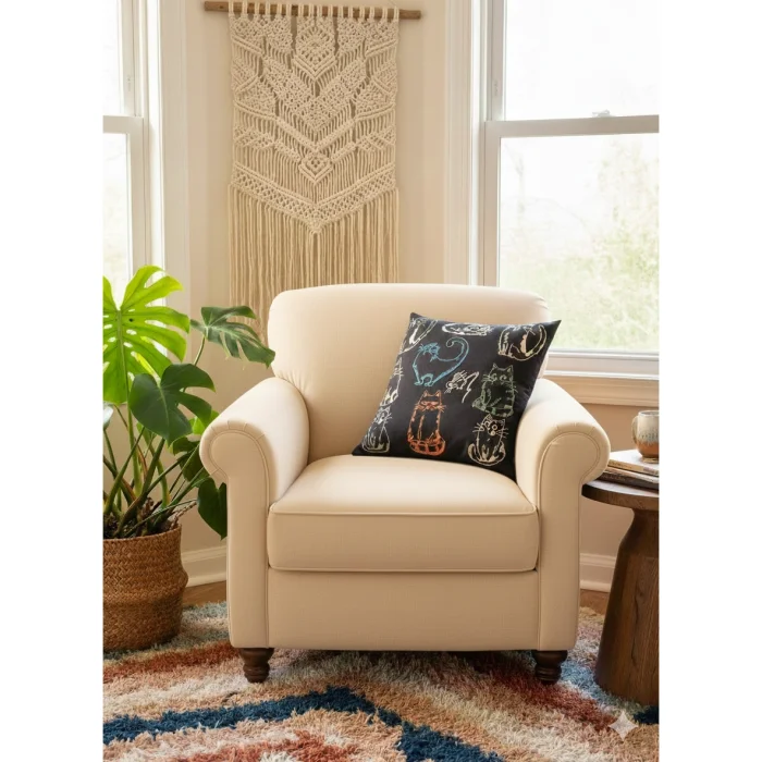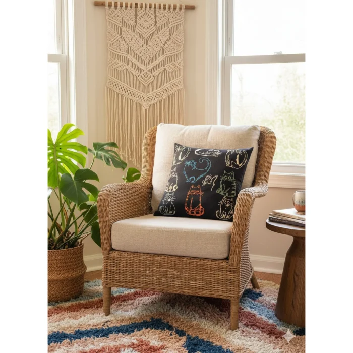 Einizin her köşesine neşe katacak bu tasarım; koltuğunuzda, yatağınızda veya okuma köşenizde sanatsal bir odak noktası oluşturur. Kedi figürlerinin o özgür ve oyunbaz ruhunu, el emeğinin sıcaklığıyla birleştirir.