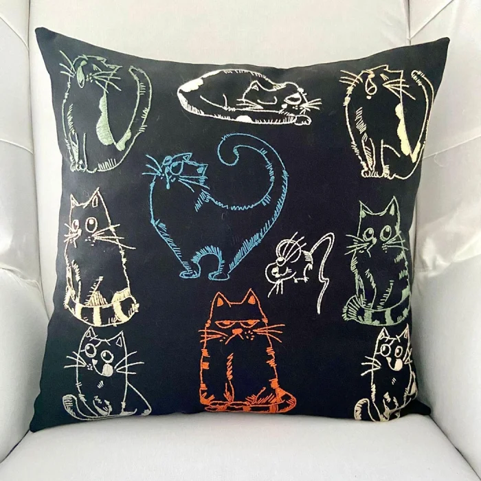 Ürün: El Yapımı Nakışlı Kedi Figürlü Yastık Kılıfı