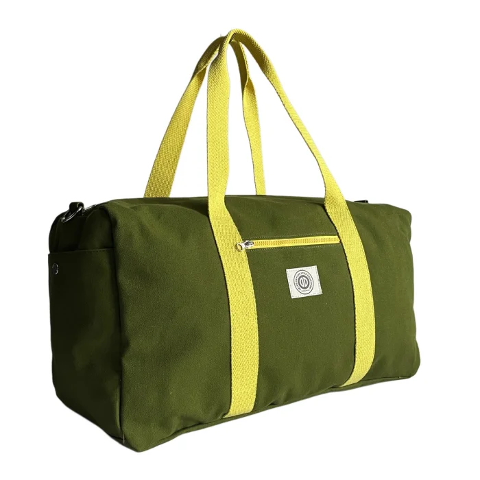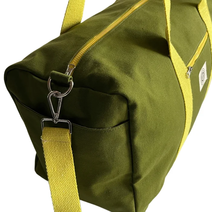 Pamuklu kanvas kumaş, kemik diş fermuarlar, çıtçıtlı ön cep, iç kısımda ekstra fermuarlı cep, vücut ölçüsüne göre ayarlanabilir omuz askısı, her iki yan kısımda çıtçıtlı cep bölme