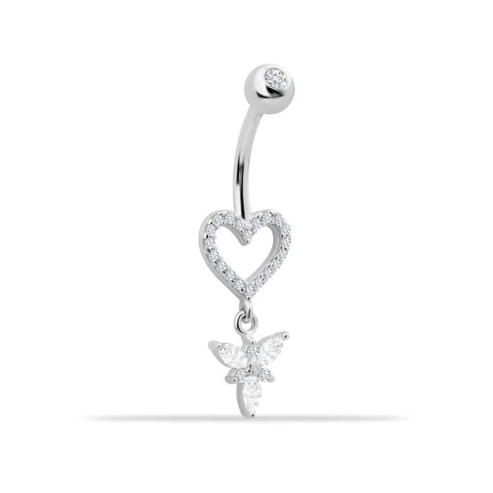 Ürün: 14 Ayar Altın Taşlı Sallantılı Kalp Gösterişli Göbek Piercing