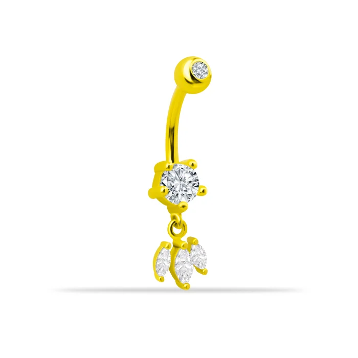 Ürün: 14 Ayar Altın Tektaşlı Baget Taş Sallantılı Göbek Piercing