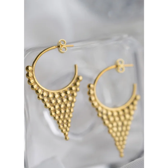 Stay Gold ve geometrinin harmonisini gündüzden geceye rahatlıkla kullanıma sunan Sphero küpe benzersiz , dinamik görüntüsü ile farklı olmak artık çok kolay.%100 el yapımı tasarımlar 925 ayar gümüşün 14 ayar altın ile buluşması ile üretilmiştir.