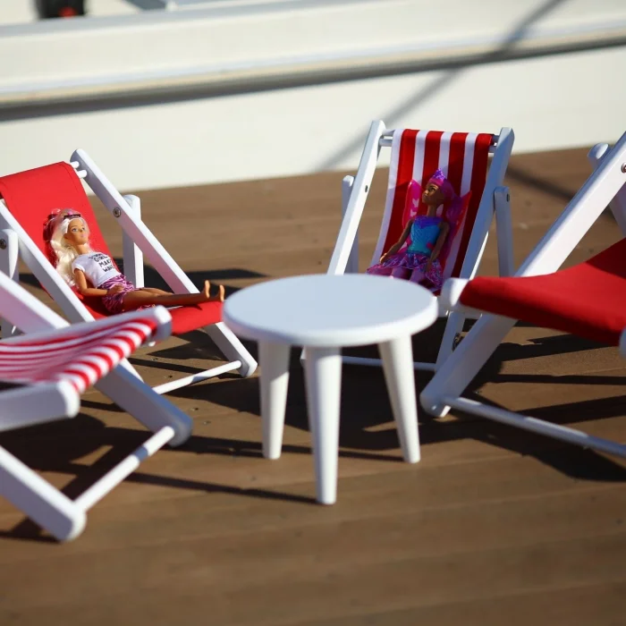 - Ürün satışına bir (1) adet kırmızı-beyaz çizgili minder ve bir (1) adet ahşap oyuncak bebek koltuğu dahildir.