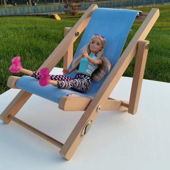 Tasarımcı Oyunu Natürel Ahşap Oyuncak Bebek Koltuğu Mavi Dış Outdoor ve İç Mekan Indoor Minder