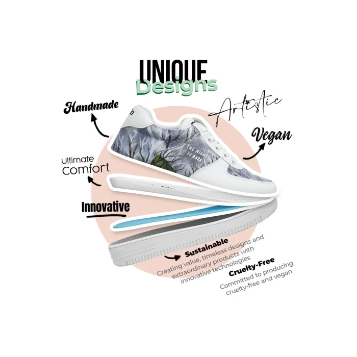 Ürün: Kadın Vegan Deri Beyaz Sneakers - The Night Is Dark Tasarım