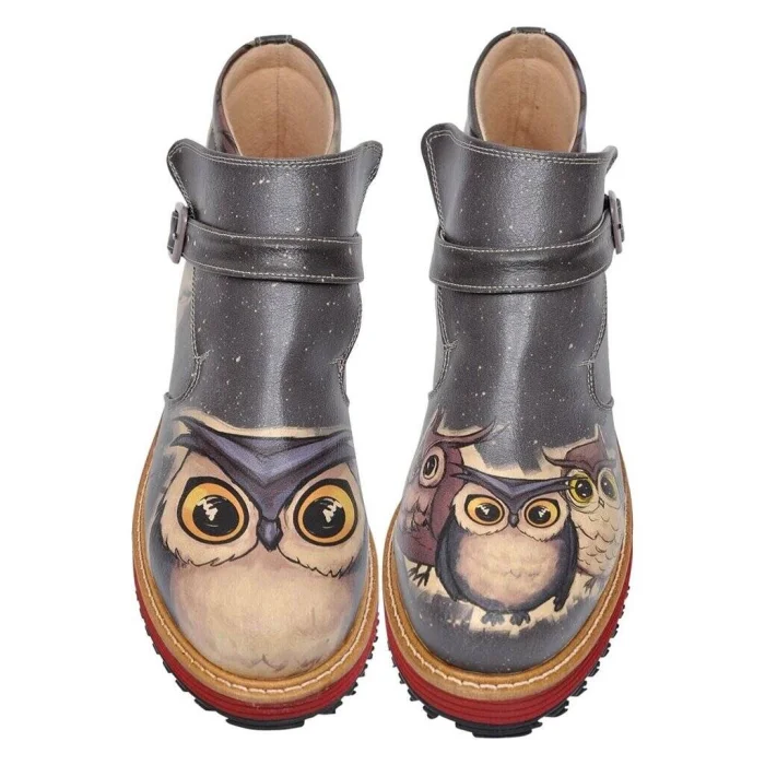 Ürün: Kadın Vegan Deri Chelsea Bot - Owls Family Tasarım