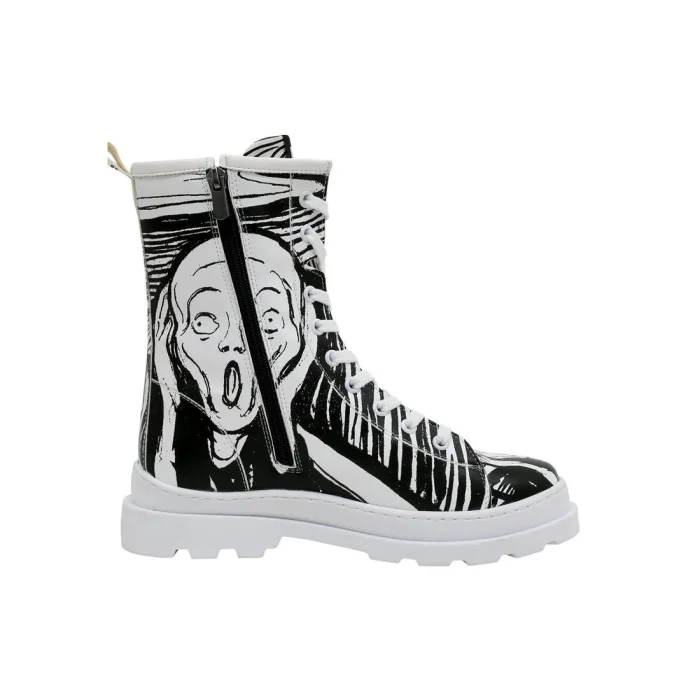 Ürün: Kadın Vegan Deri Fermuarlı Uzun Bot - Edvard Munch The Scream Muse Tasarım - Il