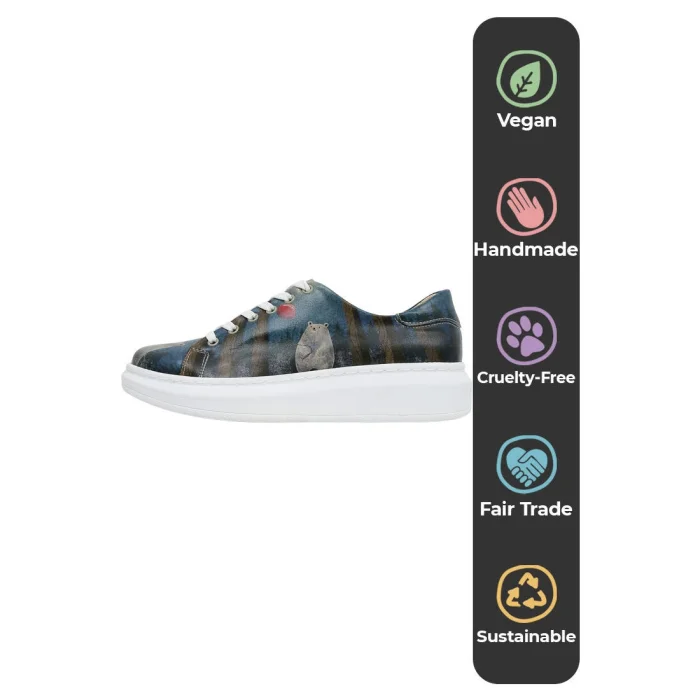 Ürün: Kadın Vegan Deri Günlük Sneakers - Bear With A Balloon Tasarım
