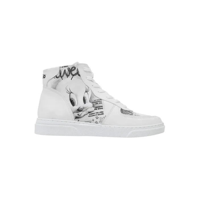 Ürün: Kadın Vegan Deri High Sneakers - Warner Bros Tweety Sketch Tasarım