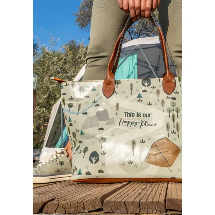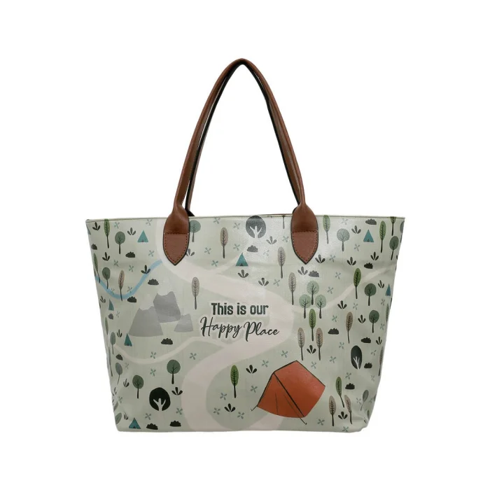 Kadın Vegan Deri Omuz Çantası - This Is Our Happy Place Tasarım