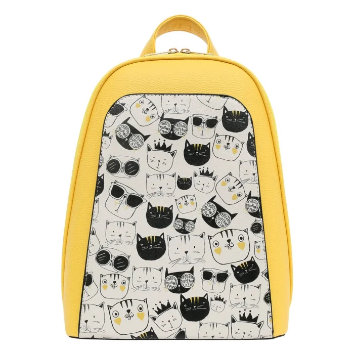 Ürün: Kadın Vegan Deri Sırt Çantası - Monochrome Cats Tasarım