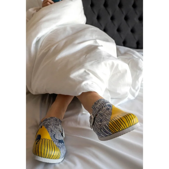 Renklerin enerjisini özgürce hisset! Comfie Kadın Vegan Deri Çok Renkli Terlik – Florasancat Tasarım, kapalı terlik konforunu cesur renklerle ve dinamik desenlerle buluşturuyor. %100 vegan terlik yapısı ve çevre dostu malzemeleri sayesinde doğaya duyarlı bir stil sunarken, mantar taban özelliğiyle düz tabanlı terlik rahatlığını gün boyu hissetmeni sağlıyor. Şehirde, tatilde ya da hayatın her anında tarzını özgürce ifade etmen için tasarlandı. Kendi stilinin sanatçısı olmak istiyorsan bu terlik tam sana göre! Kendin için özgün ve renkli bir seçim yapabilir ya da hediye terlik alternatifi ile özel zevklere sahip sevdiklerine benzersiz bir jest yapabilirsin!
