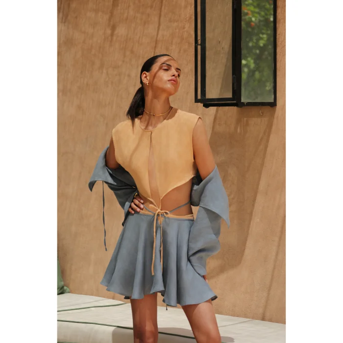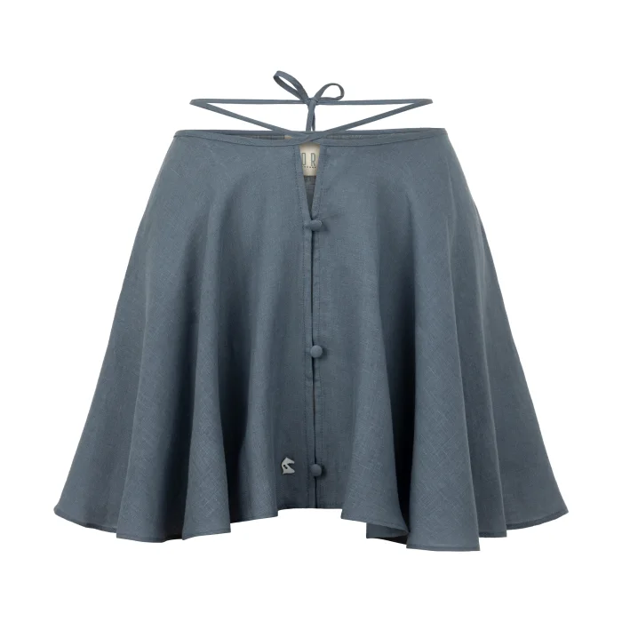 Belden bağlı volanlı kısa keten etek