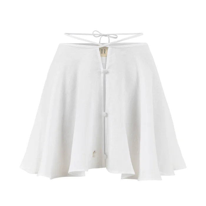 Belden bağlı volanlı kısa keten etek