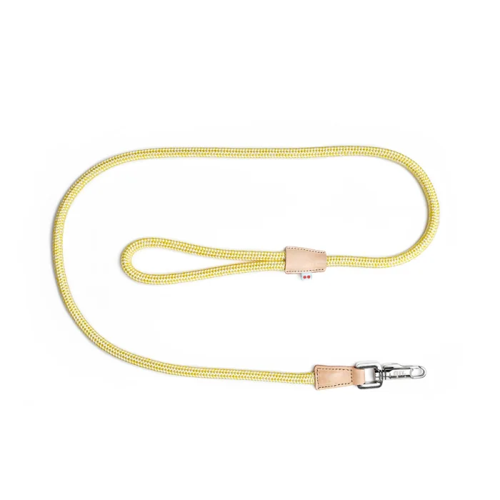 Dayanıklı halatları, bitkisel tabaklanmış deri detaylarla ve özel tasarım kancasıyla bir araya getirerek hem şık hem konforlu bir gezdirme tasması ürettik.