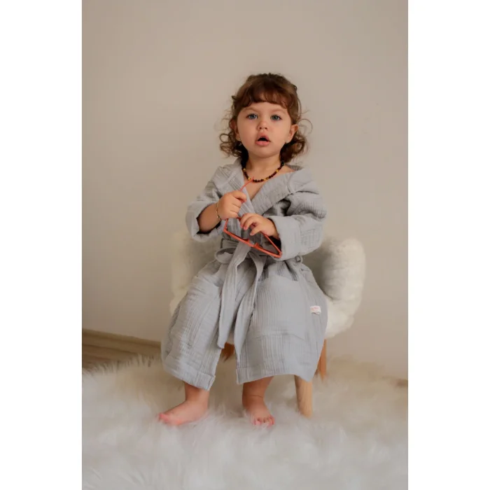 Müslin bornoz banyo sonrası hızlı kuruma için ideal kumaş yapısına sahiptir. Hafif ve hızlı su emici özelliği sayesinde cildi uyumlu bir şekilde yumuşacık sarar.