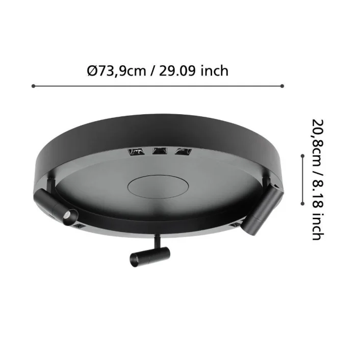 Ampul Duy Tipi: LED/LED Maksimum Watt: 3X8W/3X8.5W Ampul Dahildir. Ürün Yüksekliği: 20 cm Ürün Çapı: 60 cm Net Ağırlık: 8 Kg Ana Materyal: Çelik Ana Renk: Siyah Kelvın: 3000K Lümen: 1440 / 1920 IP Durumu: IP20 Fonksiyonlar: Uzaktan Kumanda Dahil Anahtar Tipi: Duvar Anahtarı Ürün Voltajı: 220-240V,50/60Hz