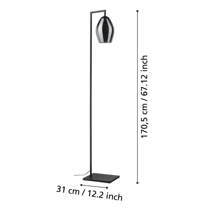 Ampul Duy Tipi: E27 Maksimum Watt: 1X40W Ürün Yüksekliği: 171.5 cm Ürün Çapı: 19 cm Net Ağırlık: 5.9 Kg Ana Materyal: Çelik Ana Renk: Siyah Cam/Şapka Materyali: Buharlaşmış Cam Cam/Şapka Rengi: Siyah-Şeffaf IP Durumu: IP20 Anahtar Tipi: Ayak Anahtarlı Ürün Voltajı: 220-240V,50/60Hz