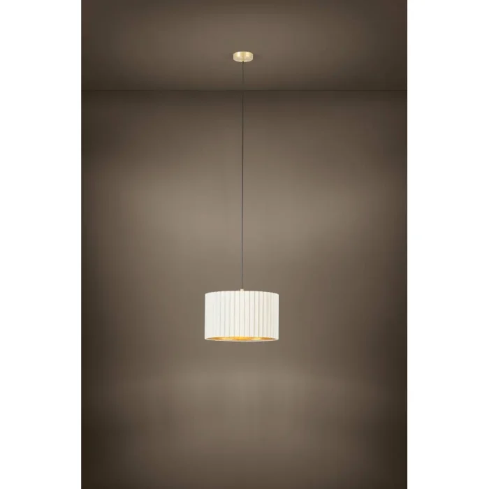Ampul Duy Tipi: E27 Maksimum Watt: 1X40W Ürün Yüksekliği: 150 cm Ürün Çapı: 38 cm Net Ağırlık: 1.55 Kg Ana Materyal: Çelik Ana Renk: Fırçalanmış Pirinç Cam/Şapka Materyali: Kadife Cam/Şapka Rengi: Beyaz, Gold IP Durumu: IP20 Anahtar Tipi: Duvar Anahtarı Ürün Voltajı: 220-240V,50/60Hz
