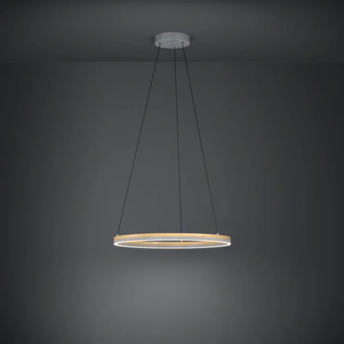 Ampul Duy Tipi: LED Maksimum Watt: 36W Ampul Dahildir. Ürün Yüksekliği: 150 cm Ürün Çapı: 60 cm Net Ağırlık: 2.38 Kg Ana Materyal: Çelik, Ahşap Ana Renk: Gri, Kahverengi Cam/Şapka Materyali: Plastik Cam/Şapka Rengi: Beyaz Kelvın: 3000K Lümen: 4600 IP Durumu: IP20 Anahtar Tipi: Duvar Anahtarı Ürün Voltajı: 220-240V,50/60Hz