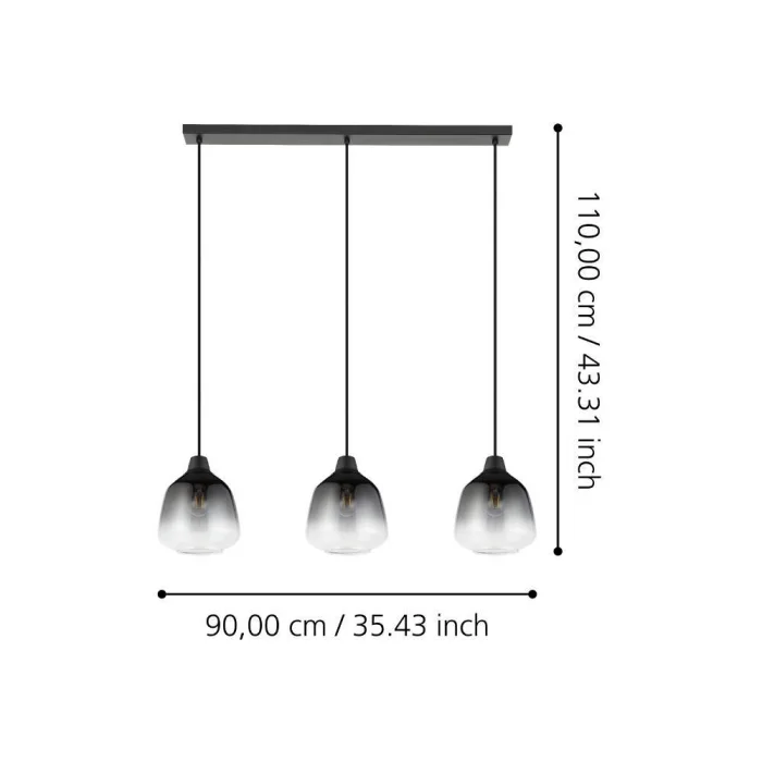 Ampul Duy Tipi: E27 Maksimum Watt: 3X40W Ürün Yüksekliği: 110 cm Ürün Uzunluğu: 90 cm Ürün Genişliği 20 cm Net Ağırlık: 4.23 Kg Ana Materyal: Çelik Ana Renk: Siyah Cam/Şapka Materyali: Cam Cam/Şapka Rengi: Siyah-Gri-Şeffaf IP Durumu: IP20 Anahtar Tipi: Duvar Anahtarı Ürün Voltajı: 220-240V,50/60Hz