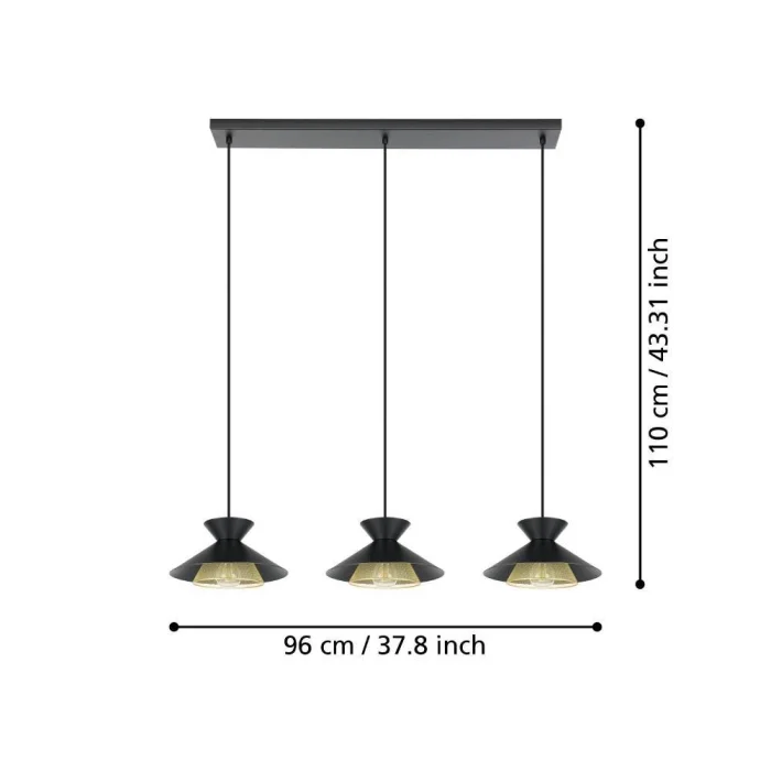 Ampul Duy Tipi: E27 Maksimum Watt: 3X40W Ürün Yüksekliği: 110 cm Ürün Uzunluğu: 96 cm Ürün Genişliği 26 cm Net Ağırlık: 3.88 Kg Ana Materyal: Çelik Ana Renk: Siyah, Pirinç IP Durumu: IP20 Anahtar Tipi: Duvar Anahtarı Ürün Voltajı: 220-240V,50/60Hz
