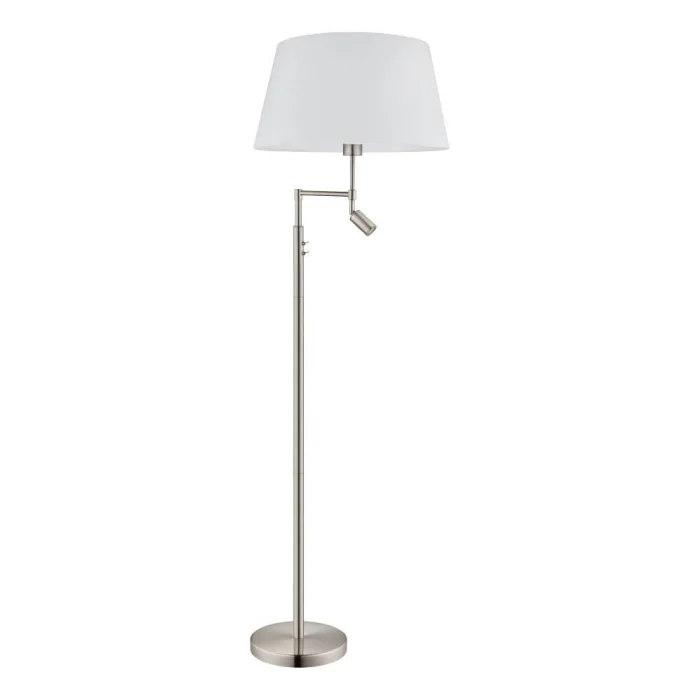 Ampul Duy Tipi: E27-LED-A60/LED Maksimum Watt: 1X11W/1X2.3W Ampul Dahildir. Ürün Yüksekliği: 153 cm Ürün Çapı: 50 cm Net Ağırlık: 5.87 Kg Ana Materyal: Çelik Ana Renk: Nikel Mat Cam/Şapka Materyali: Tekstil Kumaş Cam/Şapka Rengi: Beyaz Kelvın: 3000K Lümen: 1055/250 IP Durumu: IP20 Anahtar Tipi: Ayak Anahtarlı Ürün Voltajı: 220-240V,50/60Hz