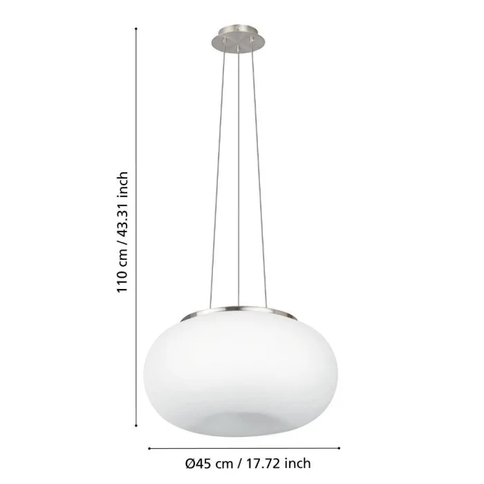 Ampul Duy Tipi: E27 Maksimum Watt: 2X60W Ürün Yüksekliği: 110 cm Ürün Çapı: 44.5 cm Net Ağırlık: 5.27 Kg Ana Materyal: Çelik Ana Renk: Nikel Mat Cam/Şapka Materyali: Opal Mat Cam Cam/Şapka Rengi: Beyaz IP Durumu: IP20 Anahtar Tipi: Duvar Anahtarı Ürün Voltajı: 220-240V,50/60Hz
