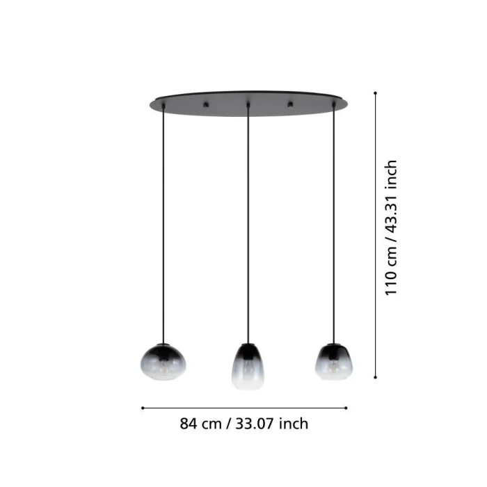 Ampul Duy Tipi: E27 Maksimum Watt: 3X40W Ürün Yüksekliği: 104.5 cm Ürün Uzunluğu: 84 cm Ürün Genişliği 19.5 cm Net Ağırlık: 3.71 Kg Ana Materyal: Çelik Ana Renk: Siyah Cam/Şapka Materyali: Buharlaşmış Cam Cam/Şapka Rengi: Siyah-Gri-Şeffaf IP Durumu: IP20 Anahtar Tipi: Duvar Anahtarı Ürün Voltajı: 220-240V,50/60Hz