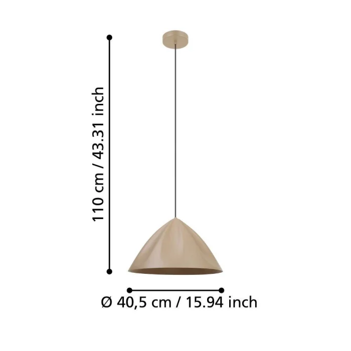 Ampul Duy Tipi: E27 Maksimum Watt: 1X40W Ürün Yüksekliği: 110 cm Ürün Çapı: 42.5 cm Net Ağırlık: 2.02 Kg Ana Materyal: Çelik Ana Renk: Kum Rengi IP Durumu: IP20 Anahtar Tipi: Duvar Anahtarı Ürün Voltajı: 220-240V,50/60Hz