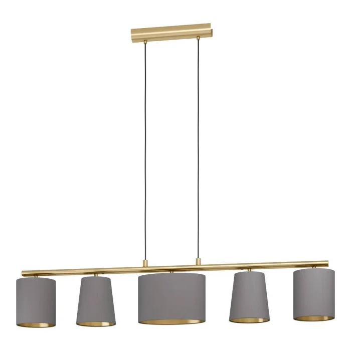 Ampul Duy Tipi: E14 Maksimum Watt: 5X40W Ürün Yüksekliği: 110 cm Ürün Uzunluğu: 120 cm Ürün Genişliği 15.5 cm Net Ağırlık: 3.98 Kg Ana Materyal: Çelik Ana Renk: Fırçalanmış Pirinç Cam/Şapka Materyali: Tekstil Kumaş Cam/Şapka Rengi: Kapuçino, Pirinç IP Durumu: IP20 Anahtar Tipi: Duvar Anahtarı Ürün Voltajı: 220-240V,50/60Hz