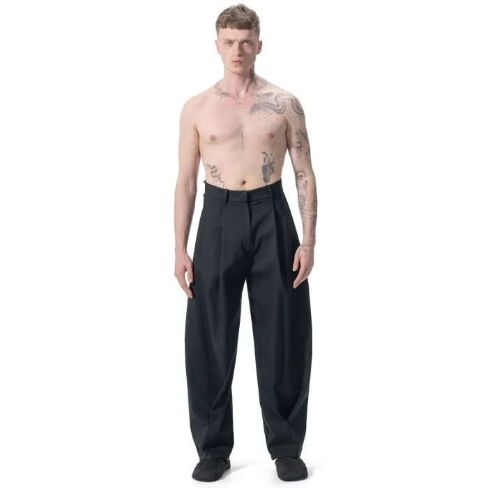 SON DERECE MODERN BİR GÖRÜNÜME SAHİP OLAN YENİ PANTOLONUMUZ, PAÇA VE BELDEKİ PİLELERİYLE FORMA GİRİYOR. YÜKSEK BELLİ FERMUARLI ELASTİK PANTOLON.
