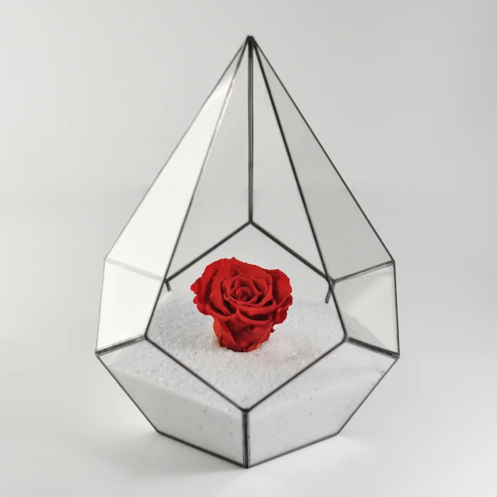 Ürün: Solmayan Gül Geometrik Teraryum Fanus & Kırmızı