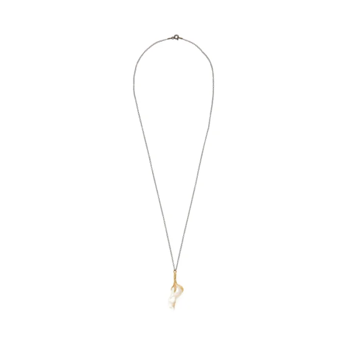 Okside gümüş zincir, gümüş üzeri altın kaplama (0,5 mikron) kolye ucu, barok inci