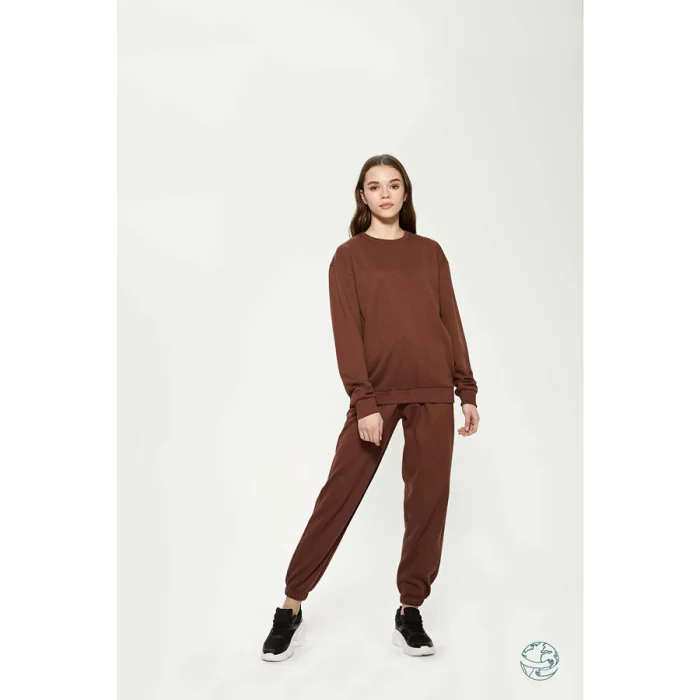 Klasik bisiklet yakalı sweatshirt. Kol ucunda, yakasında ve eteğinde kaşkorse mevcut. Nakış detaylı.