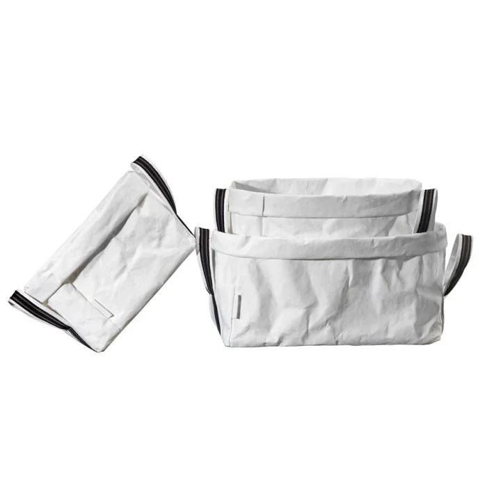 Saklama kutuları katlanılarak istenilen boyuta getirilebilir. Renkli kurdelelerle ürüne farklılık katılmıştır. Geridönüşümlü yıkanabilir kağıtlar. Suya ve yırtılmaya dayanıklı. Küçük boy: g.25 cm, Orta boy: g.29 cm, Büyük boy: g.37 cm.