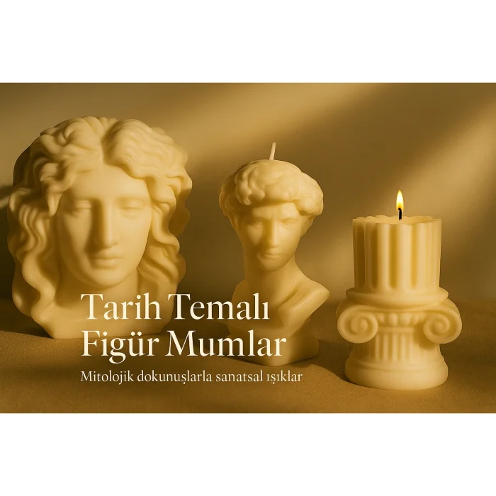 Tarih Temalı Figür Mumlar serisinin bir parçası olan bu tasarım, geçmişin görkemini modern dekorasyonla buluşturur. El dökümüyle şekillendirilen bu mum, klasik sütun detaylarıyla sanat tarihine zarif bir gönderme yapar.