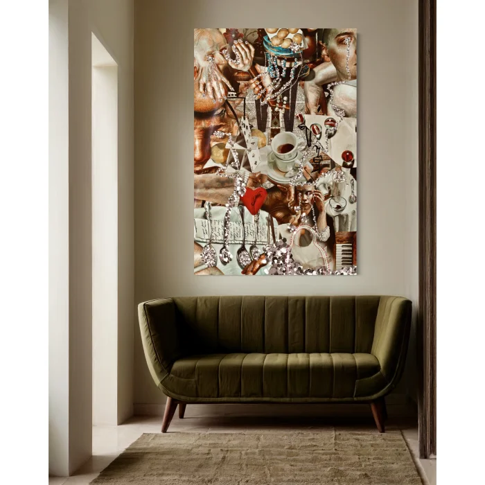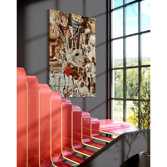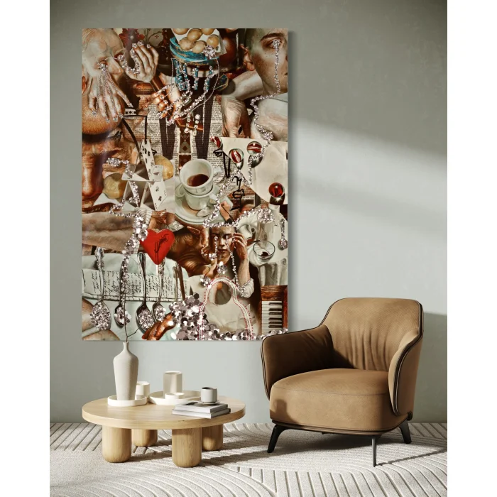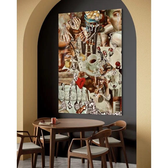 Tasarımcımız, eserlerin konumlanacağı mekâna ve yayacağı enerjiye duyduğu güvenle, EUDOIMONIART özel ürünlerini kişiselleştirilmiş bir yüzey tasarımı anlayışıyla ele alır. Ebat ne olursa olsun, her eser bulunduğu alanla uyumlanacak şekilde; modern, duyusal ve sembolik katmanları özenle çalışılmış bir kompozisyon olarak tasarlanır. Ürünlerimiz, yüksek kaliteli, mat ve özel dokulu CANVAS kumaş üzerine, ileri teknoloji baskı makineleriyle üretilir; bu sayede renkler parlak, yüzeyler sofistike bir derinlik taşır.