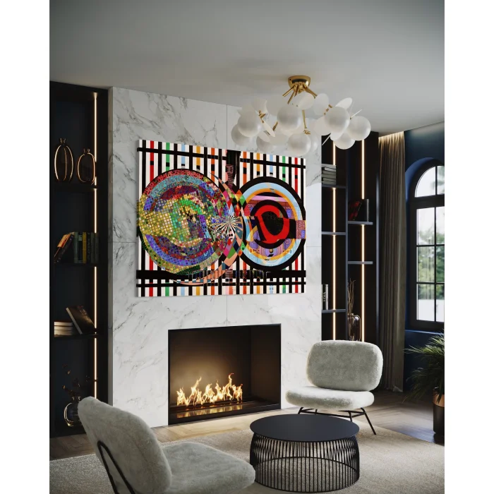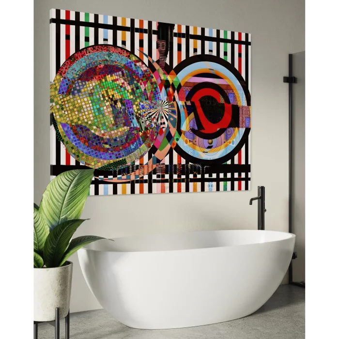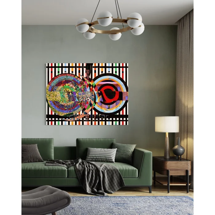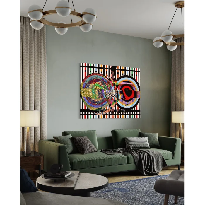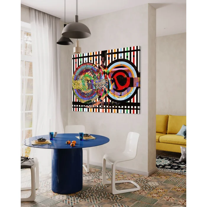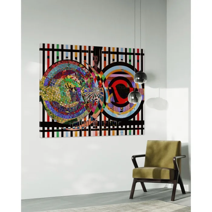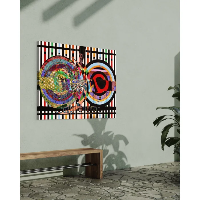 Her an, zihnimizin derinlerinde saklı olan rengarenk anılarla bezeli bir hazineyi taşır. "Mem," bu değerli anıların renklerini ve formlarını dans ettiren bir sanat eserine dönüşür. Pastel tonlar, geçmişin ince ve hafif dokusunu yansıtırken, yuvarlak formların uyumu, anıların sürekli akışını vurgular. Bu eser, sanki zihinsel bir kapının eşiğinde duruyormuşuz gibi bir his uyandırır. Renklerin ve formların melodisi, anıların perdesinde yankılanırken, izleyicileri zamansız bir yolculuğa çıkarır. "Mem," sadece gözlerin değil, aynı zamanda zihnin derinliklerinin de keşfedildiği bir eserdir. Tuval, geçmişle geleceği birleştirirken, "Mem" kelimesi adeta zihinsel bir kapının anahtarını sunar. Fırça darbeleri, renklerin ve hatıraların ritmini yakalarken, izleyicilere bireysel bir keşfin kapıları aralanır. Pastel renklerin yumuşak dokusu, anıların inceliklerini yansıtırken, yuvarlak formların kusursuz uyumu sürekli bir akışı çağrıştırır. "Mem," her bakışta farklı bir anlam taşıyan, zengin bir görsel şiir sunar. Bu eser, anıların ve renklerin özgün bir dilde dans ettiği bir tabloyu anlatır. Zihinsel derinlikler ve estetik, "Mem" ile iç içe geçer, izleyicilere kendine özgü bir deneyim sunar. Eğer anıların renklerle dokunmuş zihinsel bir yolculuğa çıkmaya hazırsanız, "Mem" sizleri bekliyor.