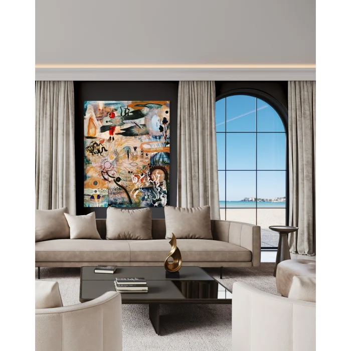 Otokton: Nicelikten Niteliğe Geçiş “Otokton,” soyut bir yolculuğa davet ediyor. Bu eser, nicelikler ve nitelikler arasında anlamlı bir denge kuruyor. İnsan kendini inşa etmeye, soyut olanın değerini bilerek başlar. Kendimizi keşfetmek, deneyimlerimizin derinliğini anlamakla mümkün hale geliyor. Renkler ve formlar arasındaki geçişler, içsel huzurumuzu bulmamıza yardımcı oluyor. Her bir renk, bir duyguyu temsil ediyor ve her form, yaşamımızdaki deneyimleri yansıtıyor. Kendimizi bulmak, bu soyut deneyimlerin içinde kaybolmakla başlıyor. Otokton, varlık ve yokluk arasındaki dengeyi sorguluyor. Bu tablo, öz benliğinizi inşa etme sürecinde ilham veriyor. Belki de anlamın soyut hali, özdeşleştiğimiz renk ve formlar aracılığıyla gün yüzüne çıkıyor. EUDOIMONIART olarak, bu derin deneyimi yaşamanız için sizi davet ediyoruz. Renkler ve formlar, duyguların ve düşüncelerin bir ifadesi olarak, yeni bakış açılarıyla buluşmanıza katkıda bulunuyor. Hayatın karmaşası içinde, içsel yolculuğunuzda rehberlik eden bir eser arıyorsanız, Otokton sizin için önemli bir durak olabilir. Otokton’un boyutları ise 100 x 124 cm ve 146 x 181 cm olarak belirlenmiştir. Bu tabloyu incelediğinizde, kendinizde hangi parçaları buluyorsunuz? Belki de soyut olanı anlamak, somut deneyimlerin ötesine geçmekle başlar. Kendinizi inşa etme yolunda atacağınız adımların ilham kaynağı olarak Otokton, sizi yeni keşiflere yönlendirebilir. * Otokton: Transition from Quantity to Quality “Otokton” invites you on an abstract journey. This artwork establishes a meaningful balance between quantity and quality. A person begins to build themselves by recognizing the value of the abstract. Discovering ourselves becomes possible by understanding the depth of our experiences. The transitions between colors and forms help us find our inner peace. Each color represents an emotion, and each form reflects the experiences in our lives. Discovering ourselves starts with losing ourselves in these abstract experiences. Otokton questions the balance between existence and non-existence. This painting inspires you in the process of constructing your true self. Perhaps the abstract essence of meaning comes to light through the colors and forms we identify with. As EUDOIMONIART , we invite you to experience this profound journey. Colors and forms contribute to your encounter with new perspectives as expressions of emotions and thoughts. If you are looking for a piece that guides you in your inner journey amidst the complexities of life, Otokton can be an important stop for you. The dimensions of Otokton are set at 100 x 124 cm and 146 x 181 cm. When you examine this artwork, what pieces of yourself do you discover? Perhaps understanding the abstract begins with transcending the concrete experiences. As a source of inspiration for the steps you take in building yourself, Otokton can guide you toward new discoveries.